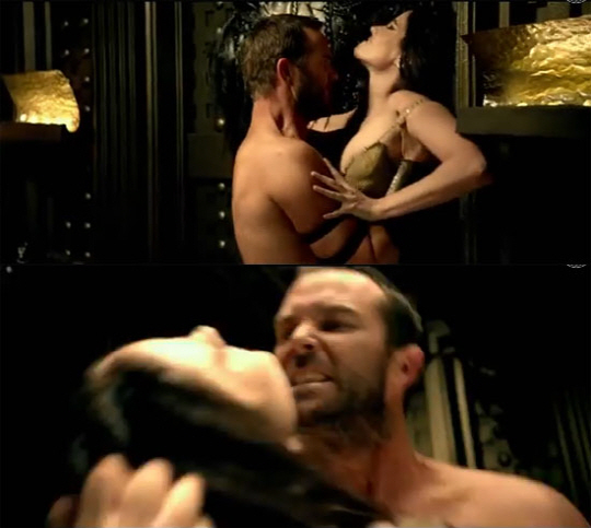 특히 영화에서 상대편인 테미스토클레스(설리반 스탭플턴 분)의 능력을 높이 산 아르테미시아가 자기 편으로 끌어들이기 위해 배로 불러들이는 장면에서 둘의 과격한 정사신이 이뤄진다. 해당 장면은 전투장면을 능가하는 격렬함을 보이며 영화 속 장면 중 최고의 화제가 되고 있다.
