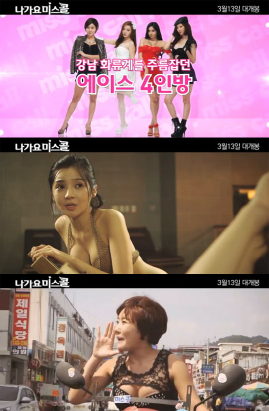 13일 개봉한 영화 '나가요 미스콜'은 서울 강남 화류계를 주름잡던 미스 신(민송아 분), 미스 고(한규리 분), 미스 최(유선영 분), 미스 리(태우 분) 4명의 아가씨가 화류계 생활에 환멸을 느끼고 미스 리의 고향인 전북 진안으로 낙향해 '미스콜 다방'을 개업하면서 벌어지는 소동을 담은 섹시코미디 영화다.