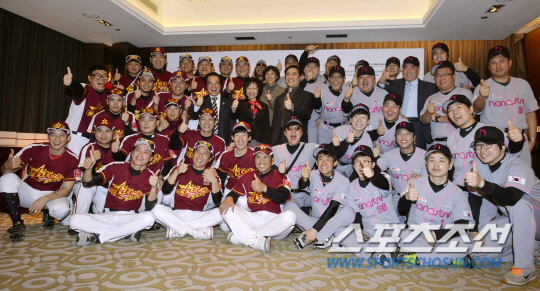양팀은 덕담을 주고 받으면서도 미묘한 신경전을 펼쳤다. 본격적인 경기에 앞서 입담으로 전초전을 치르는 분위기였다. 주제는 역시나 상대팀의 전력. 투수의 구속을 묻는 펑챠챠 감독의 기습 질문에 이근희 감독은 "비밀"이라며 재치있게 응수했고, 쉬샤오슌 부단장은 "상대팀 요주의 선수를 꼽아달라"는 질문을 받고 능청스러운 표정으로 이근희 감독의 후덕한 뱃살을 가리켜 웃음을 자아냈다.