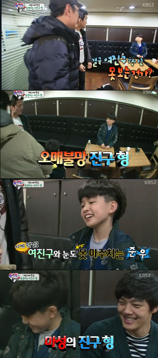 '슈퍼맨이 돌아왔다' 준우, 여진구 등장에 팬심 폭발..'부끄부끄' |