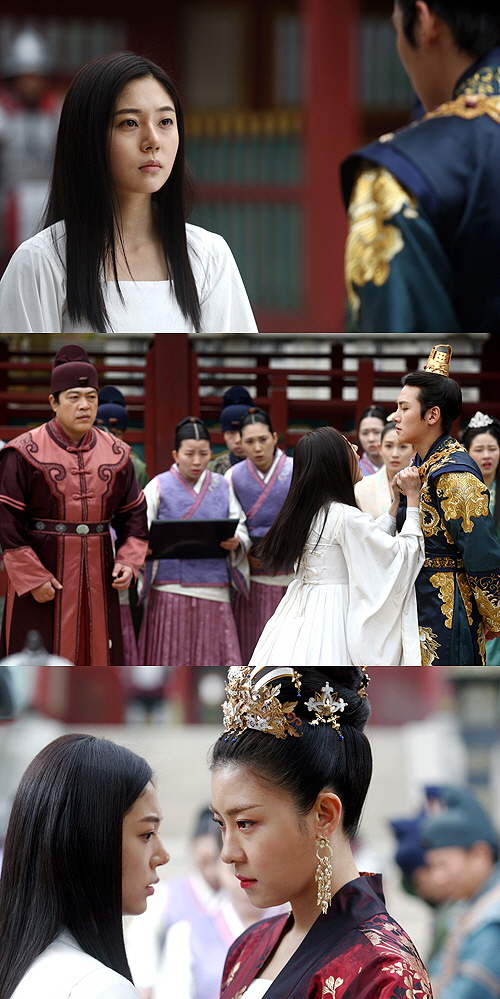 타나실리가 사약을 받을 것이 알려진 가운데 타환과 승냥이 타나실리와 마주하고 있는 사진이 눈길을 끌고 있다. 특히 타환의 멱살을 잡고 독기 가득한 눈으로 타환을 쏘아보는 타나실리와 그런 타나실리를 무심하게 바라보는 타환의 모습이 더욱 이목을 집중시키고 있다.