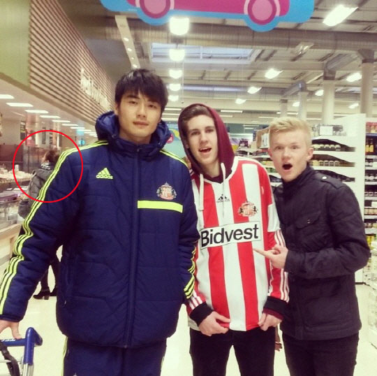 기성용(선덜랜드)을 대형 마트에서 장을 보다 만난 팬들이 반가움의 인증샷을 공개했다.