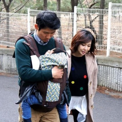 슈는 14일 자신의 블로그에 아이를 앞으로 안은 남편 임효성과 다정하게 손을 잡고 길을 걷는 모습의 사진을 게재했다.