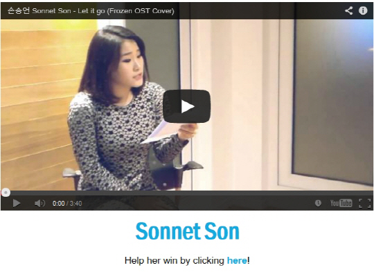 손승연 역시 자신의 트위터를 통해 "미국 MC 라이언 시크레스트 홈페이지에 렛잇고 베스트 커버 투표를 하고있는데, 저도 20명 안에 들어있네요! 여러분들 모두 Sonnet Son(=손승연)에게 투표부탁드려요!" 라며 투표를 독려하고 있다.