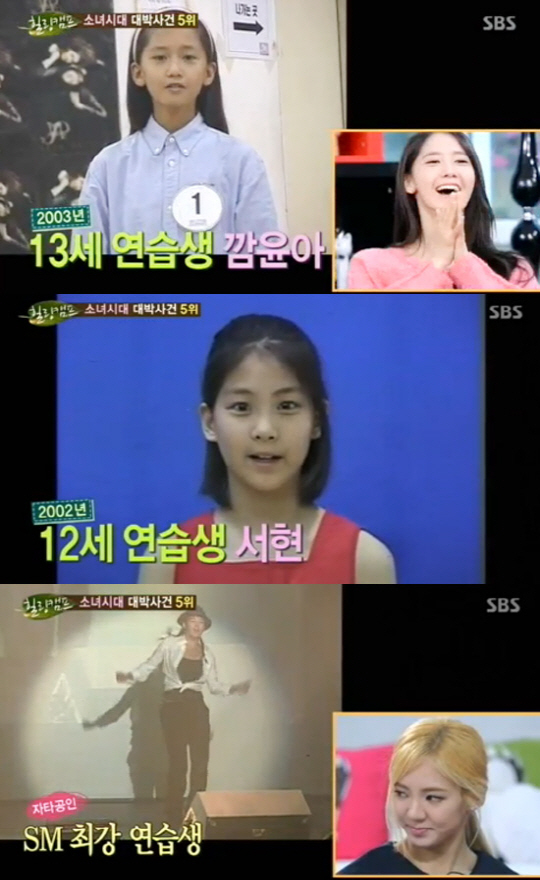 특히 이날 방송을 통해 소녀시대의 데뷔 전 연습생 시절이 공개됐다. 영상에는 윤아와 서현의 연습생 시절 깜직한 모습과 효연의 파워풀한 안무이 담겨 있었다. 소녀시대는 영상을 보며 부끄러움을 감추지 못하며 수줍은 모습을 보였다.