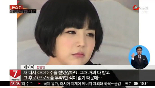 17일 TV조선은 "에이미에게 성형수술을 해준 성형외과 원장 최 모 씨에게 성폭행을 당했다며 고소한 병원 여직원 김 모 씨가 에이미를 프로포폴 불법 투약 혐의로 경찰에 고발했다"고 보도했다.