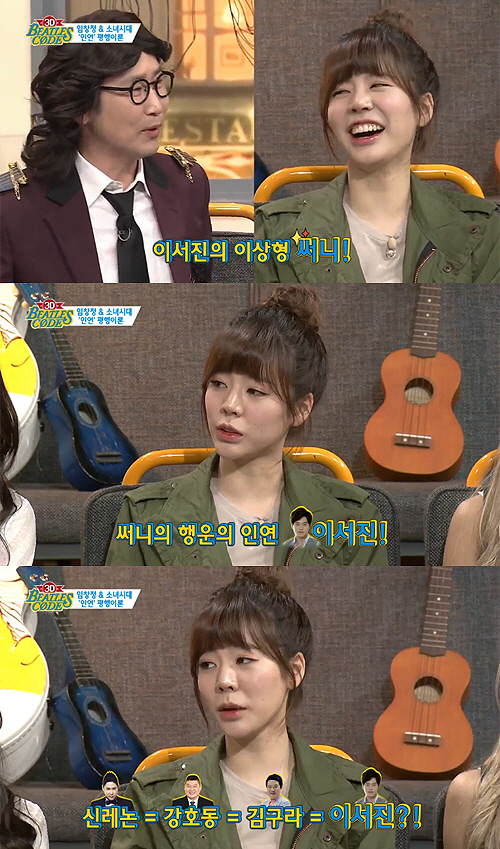 이날 MC 신동엽은 "이서진이 써니를 이상형이라고 하던데 결국 '꽃보다 할배'에서 여행도 함께하지 않았느냐"며 넌지시 질문했다.