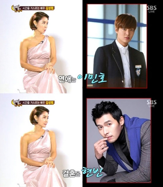 이어 김성령은 "이민호한테는 사랑을 주고 싶고, 현빈한테는 사랑을 받고 싶은 느낌이다"고 각기 다른 매력을 설명했다.