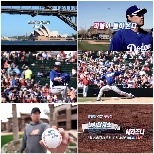 MBC는 오는 23일 오전 10시 45분부터 호주 시드니에서 열리는 LA다저스와 애리조나 다이아몬드백스의 '2014 메이저리그 오프닝 시리즈' 류현진 선발경기를 단독으로 위성 생중계한다.