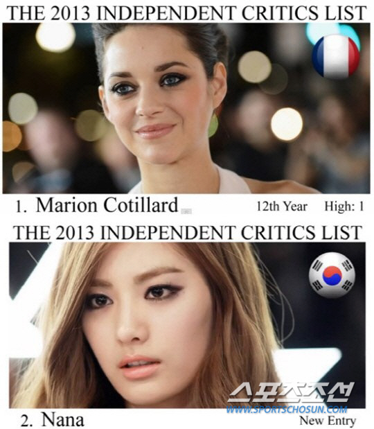 나나는 지난해 12월 미국의 영화 사이트인 TC 캔들러(TC Candler)가 발표한 '2013 세계에서 가장 아름다운 얼굴 100인'에서 프랑스 유명 배우 마리옹 꼬띠아르에 이어 2위에 올랐다.