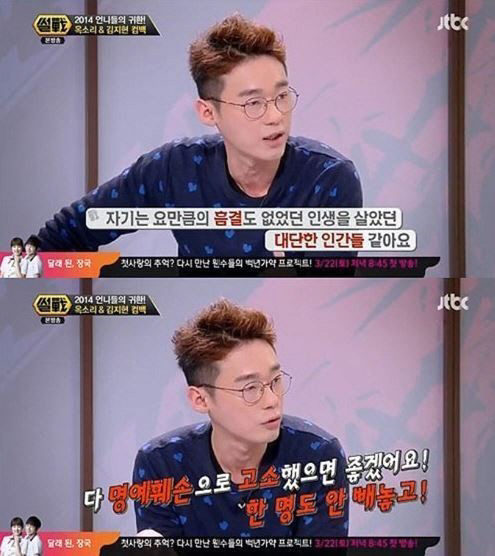 허지웅은 "민주공화국에서 잘못한 일이 있으면 책임을 지면 되는 거 아니냐. (옥소리는) 나름의 방식으로 책임을 진 거다"라며 "왜 자꾸 이런 식의 여론 재판이 이뤄지는지 그 부분에 대해서 굉장히 아쉽다"고 설명했다.