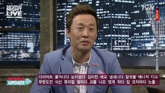 22일 방송된 tvN 'SNL 코리아'에서는 호스트로 정준하가 출연해 유희열이 진행하는 '피플 업데이트'에 등장했다.