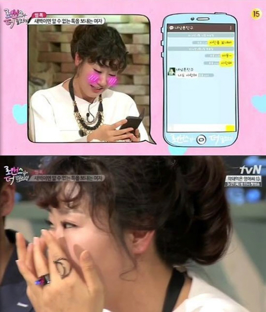 이에 라미란은 남편에게 "야옹~"이라는 1차 메시지를 보냈다. 하지만 대답을 받지 못하자 "사랑해"라는 2차 메시지를 보냈고, "나도 사랑해"라는 메시지를 받았다.