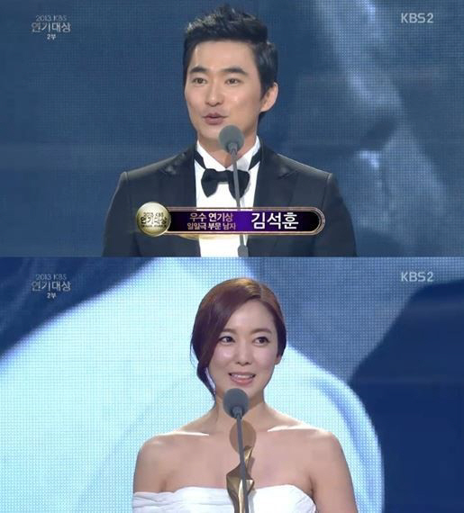 또한 지난해 12월 31일 KBS홀에서 열린 '2013 KBS 연기대상'에서 나란히 우수상을 수상했을 때도 김석훈은 "얼굴이 뒤바뀐 상황에서 연기가 힘들었을 텐데 중심을 잘 잡아준 이소연, 임정은 씨께 감사드린다"고 전했다.