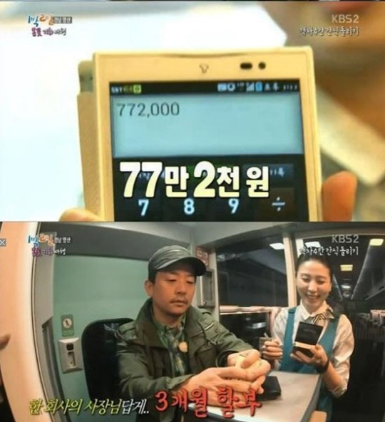 이내 마지막 객실까지 간식을 제공한 결과 77만 2천원이라는 결과가 나왔고, 3개월 할부로 카드를 긁은 김준호는 "3개월 동안 잊지 않을 것"이라고 분노를 자아내 웃음을 안겼다.
