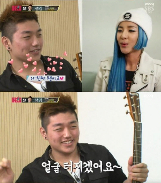 갑작스러운 산다라박의 방문에 유창하던 한국말도 잊은 샘김은 자신의 기타에 산다라박의 싸인을 받는 등 호흡곤란 증세까지 보여 웃음을 안겼다.