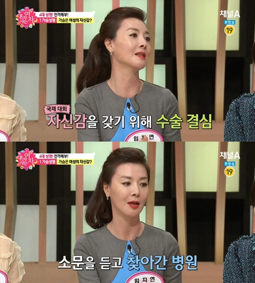 이날 '여자의 자신감은 가슴?'이라는 주제로 이야기를 나누던 중 임지연은 "사실 가슴확대수술을 1985년도에 했다"고 깜짝 고백해 눈길을 끌었다.