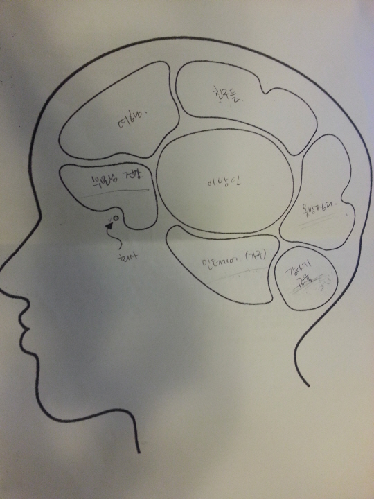 "요즘 머릿 속에 있는 생각들이요?" 강소라는 하나씩 그려나갔다. 가장 먼저 채운 것은 '닥터이방인'이다. 그녀에게 현재 이보다 중요한 생각은 없는 듯하다. 이후 '인테리어'라고 적었다. "사실 얼마 전에 집에 불이 났어요. 큰 불이 난 것은 아니고, 방에 난 것인데요. 도배도 새로 싹 하고요. 가구도 다 바꿨어요."
