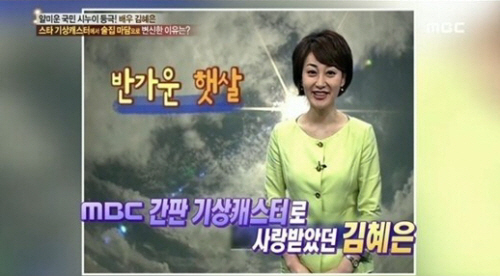공개된 사진 속 김혜은은 짧은 단발 헤어스타일에 날씨를 전하고 있는 모습으로, 현재와는 다른 모습에 네티즌들은 낯설어 하고 있다.