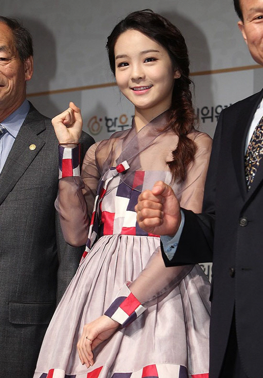 송소희는 25일 오전 서울 플라자호텔 22층 다이아몬드홀에서 열린 한우홍보대사 위촉식 행사에서 고운 한복을 입고 참석해 소감을 전했다.