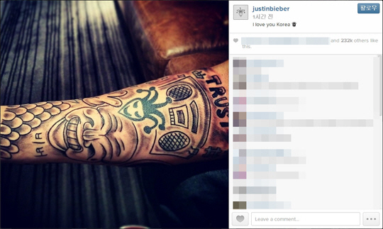앞서 저스틴 비버는 한국의 타투 아티스트 조승현과 찍은 사진을 올리며 그의 능력을 칭찬하는 글을 남겨 관심을 모은 바 있다.