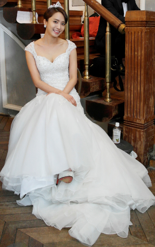 배우 박정아가 웨딩드레스 자태를 공개했다.