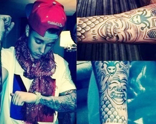 사진 속에는 문신으로 가득한 저스틴 비버의 팔이 담겨져 있다. 특히 수많은 문신 중 '하회탈'과 자신의 이름을 한글로 '비버'라고 새겨 놓으며 보는 이들의 눈길을 끌고 있다.