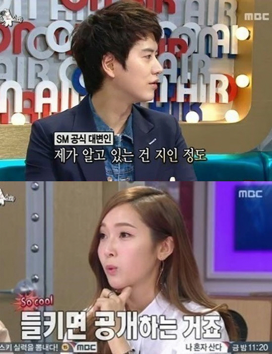 이에 같은 소속사인 MC 규현은 "그때 우리가 열애 아니고 스킨십 얘기를 했지 않나. (두 사람은) 내가 알기로 지인이다"라고 대신 해명하는 분위기를 자아냈고, 윤종신은 "지인과 제시카가 만나는 건 알았느냐"고 꼬집자, "보도를 보고 알았다"고 대답해 폭소케 했다.
