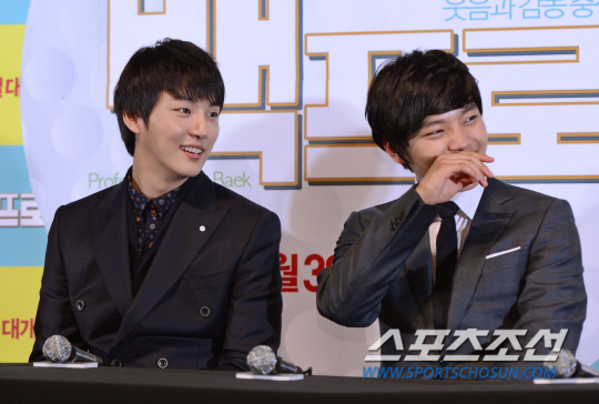 이들은 27일 오후 롯데시네마 건대입구에서 열린 영화 '백프로'의 언론배급시사회 및 기자간담회에 참석했다. 이 자리에서 윤시윤이 흥행 공약을 묻는 질문에 "다른 분들은 수치를 높게 잡던데, 우리는 꼭 하고 싶어서 낮게 잡겠다"며 "500만을 넘기면 여진구 군이 걸그룹 춤을 추는 것이 보고 싶더라"며 우회적으로 여진구와 함께 걸그룹 댄스에 도전하겠다는 의사를 밝혔다. 이에 여진구는 당황하는 모습을 보이면서도 "형이랑 한다면"이라며 긍정했다.