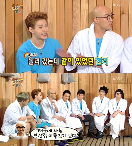 이날 슈퍼주니어 멤버들과 친분이 있던 홍석천은 방콕에서 헨리와 만난 일화를 털어놓았다. "방콕에서 헨리를 만났는데 슈퍼주니어와 같은 호텔에서 묵게 됐다"며 "내가 신동, 시원, 희철과 친하다. 헨리가 한쪽 구석에 앉아있는데 슈퍼주니어인줄 몰랐다"고 말문을 열었다.