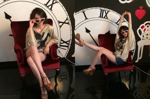 공개된 사진 속에는 시계가 그려진 벽을 배경으로 베이색톤의 티셔츠에 데님 핫팬츠를 매치한 패션을 선보이고 있는 고아라의 모습이 담겨있다.
