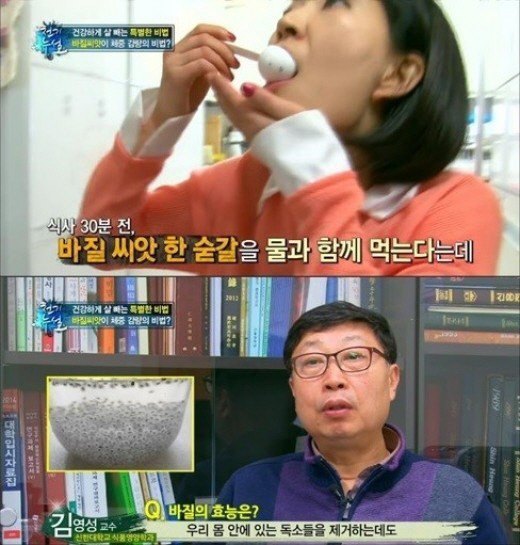 정 씨는 바질씨앗을 식사 30분 전, 물과 함께 한 숟갈씩 먹는다면서 "바질씨앗은 물을 만나면 30배까지 커지기 때문에 조금만 먹어도 포만감이 들어서 식사량을 조절할 수 있다"고 전했다.