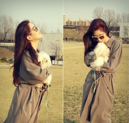 공개된 사진 속에는 서현이 자신의 애완견인 두부를 안고 야외에서 봄 분위기를 만끽하고 있는 모습이 담겨있다.