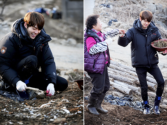 김재원은 "우빈이는 어떤 게 냉이인 줄 아냐"고 물었고, 냉이가 생소한 김우빈은 어리둥절해했다. 곧이어 엄마가 냉이 캐는 법을 알려주기 위해 밭으로 나왔고, 김우빈은 엄마에게 "이게 맞느냐"고 하나하나 물어보며 성실하게 작업에 임했다.