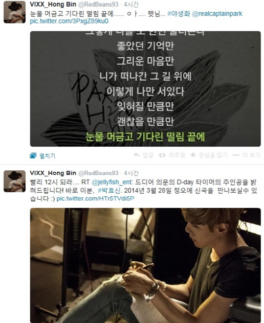 홍빈은 28일 오후 자신의 트위터 계정을 통해 "드디어 의문의 D-day 타이머의 주인공을 밝혀드립니다! 바로 이 분, 박효신. 2014년 3월 28일 정오에 신곡을 만나볼 수 있습니다"라는 글을 게시했다.