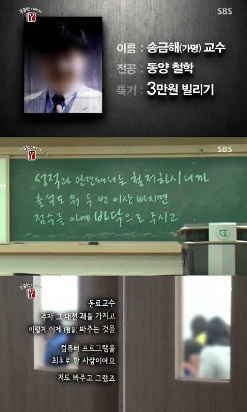 28일 방송된 SBS '궁금한 이야기Y'에서는 일명 '3만원 교수'라고 불리는 철학과 송금해(가명) 교수의 채무관계를 추적했다.