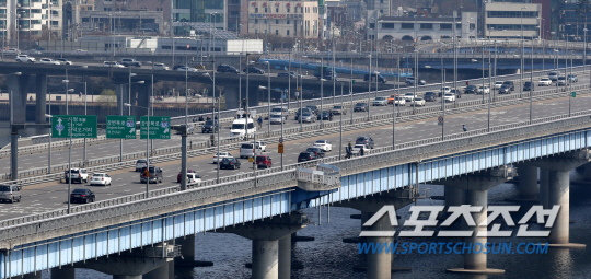 영화 '어벤져스 : 에이지 오브 울트론)'의 촬영으로 인해 30일 서울 마포대교가 인근 교통이 통제되어 한산한 모습을 보이고 있다. '어벤져스 2'는 오늘 마포대교를 비롯해 세빛둥둥섬, 상암동 DMC 월드컵북로, 청담대교, 강남역 사거리, 문래동 철강거리, 계원예대 인근 등에서 내달 14일까지 촬영을 진행할 예정이다. 허상욱 기자 wook@sportschosun.com