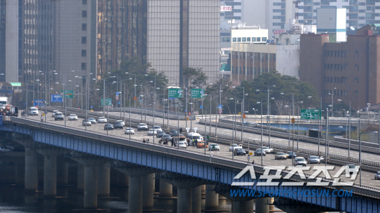 영화 '어벤져스 : 에이지 오브 울트론)'의 촬영으로 인해 30일 서울 마포대교가 인근 교통이 통제되어 한산한 모습을 보이고 있다. '어벤져스 2'는 오늘 마포대교를 비롯해 세빛둥둥섬, 상암동 DMC 월드컵북로, 청담대교, 강남역 사거리, 문래동 철강거리, 계원예대 인근 등에서 내달 14일까지 촬영을 진행할 예정이다. 허상욱 기자 wook@sportschosun.com/2014.03.30