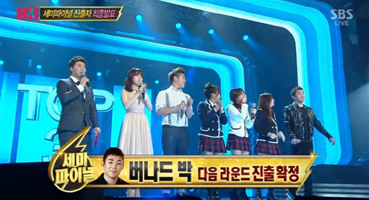 버나드박은 'K팝스타' 역대 최고점인 299점을 기록하며 가장 먼저 TOP3로 호명돼 세미파이널에 진출했다. 이어 권진아와 샘김이 차례대로 최후의 3인에 이름을 올렸고, 짜리몽땅이 최종 탈락자가 됐다.