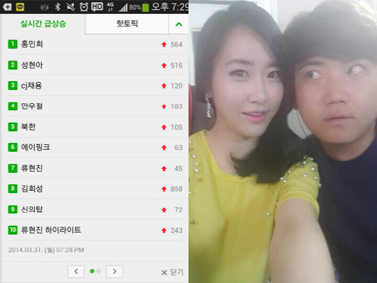 또한 이날 방송 중 홍민희 아나운서는 포털 사이트 검색어에 자신의 이름이 오르내렸고, 이에 트위터를 통해 감사의 인사를 전하기도 했다.