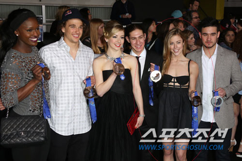 사진 속에는 미국 피겨스케이팅 간판 스타 애슐리 와그너(22)가 팀 트로피에서 함께 동메달을 딴 피겨 선수들과 화사하게 웃고 있다. 특히 애슐리 와그너는 속옷을 연상케하는 블랙 미니드레스를 입고 2014 소치 동계올림픽에서 딴 피겨 단체전 동메달을 든 채 환하게 웃고 있다.