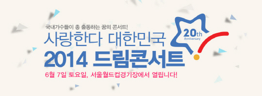 올해로 20주년을 맞은 '사랑한다 대한민국 2014 드림콘서트'(이하 드림콘서트)가 6월 7일 열린다.