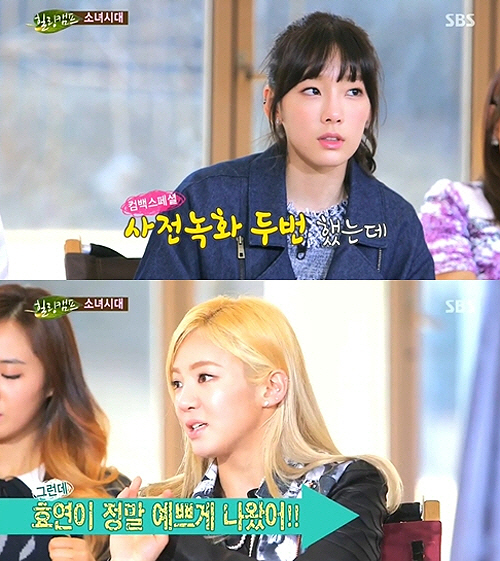 당시 태연은 "'Gee' 첫 방송 날이었다. 사전 녹화를 안전하게 두 번씩 한 상황이었는데 첫 번째 녹화 때 내 인이어가 빠지는 바람에 그림이 별로 안 예쁘게 나왔다. 그런데 그때 효연이 얼굴이 정말 예쁘게 나왔다"며 당시 상황을 설명했다.