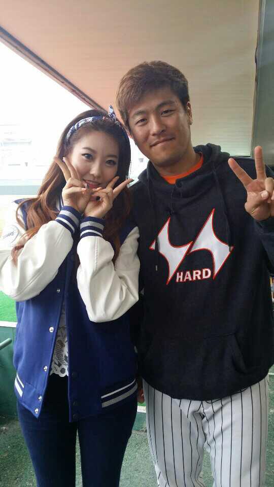 걸그룹 베스티의 멤버 다혜가 롯데 간판 포수 강민호와 함께 찍은 사진을 공개해 화제다.