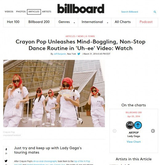 칼럼니스트 제프 벤자민은 "입소문을 통해 퍼진 크레용팝의 안무가 그들을 K팝 정상을 차지할 수 있게 만들었다"며, "레이디 가가 콘서트 투어에 초대받을 수 있도록 했다"고 평가했다.
