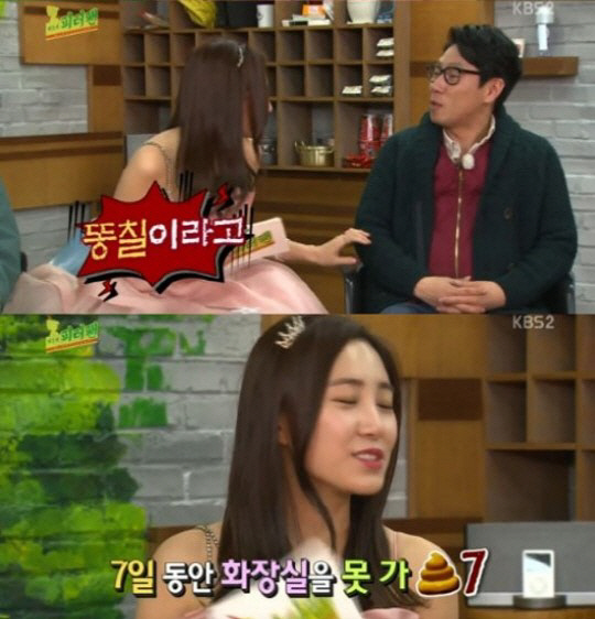 특히 이날 최희는 자신의 별명을 묻는 질문에 "어렸을 때 변비가 정말 심했다"며 "7일 동안 화장실을 가지 못해서 별명이 똥칠이었다"고 고백해 웃음을 자아냈다.