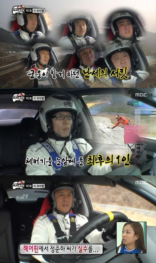 그러나 기어 변속 과정에서 실수를 저지른 정준하가 스핀으로 라인을 이탈하며 튕겨져 나가자, 이때를 놓치지 않고 유재석이 추월에 성공했다.