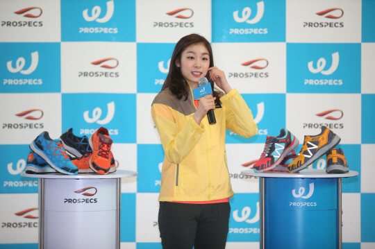 김연아는 지난 5일 부산 신세계백화점 센텀시티점의 아이스링크장에서 팬사인회를 진행했다. 김연아는 이날 팬들과의 만남을 위해 옐로우 컬러의 가벼운 스판 재킷과 7부 팬츠, 레드와 블루가 조합된 다이내믹한 디자인의 워킹화를 매치하고 봄기운이 물씬 풍기는 스프링룩을 선보여 더욱 눈길을 끌었다.