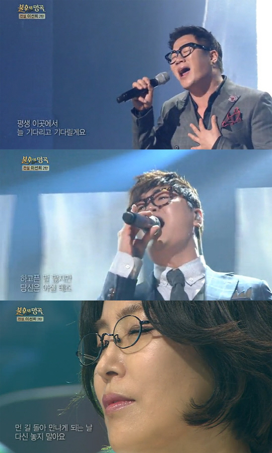 이어 무대에 오른 두 사람은 진정성이 담긴 호소력 짙은 목소리로 환상적인 하모니를 만들어 냈다. 노래 중반 이후 '전설' 이선희는 두 사람의 노래에 심취한 듯 두 눈을 감고 감상하는 모습이 카메라에 잡히며 눈길을 끌었다.