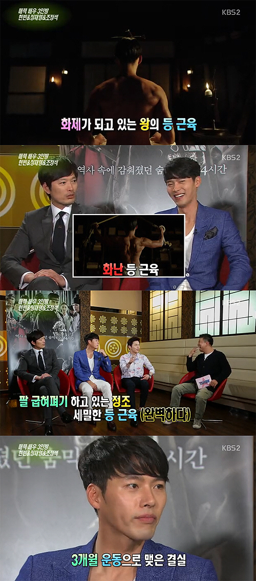 지난 5일 오후 방송된 KBS 2TV '연예가중계'에서는 영화 '역린'의 주인공 현빈, 정재영, 조정석의 인터뷰가 전파를 탔다.